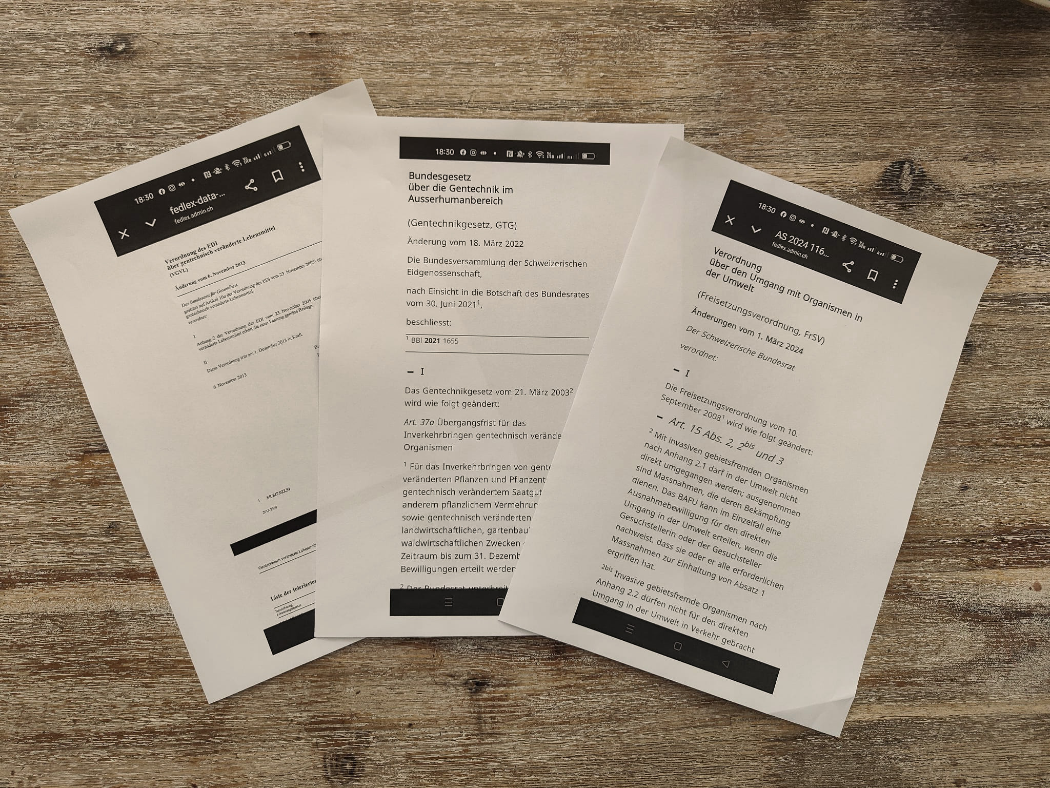 Regelt: Umgang mit gentechnisch veränderten Organismen (GVO) in der Umwelt, in geschlossenen Systemen und in Lebensmitteln.